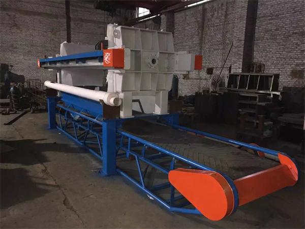 污泥注人泵可采用變頻式離心泵或是采用一臺高流量低壓力的污泥注人泵,與一臺低流量高壓力污泥注人泵(16MPa工作壓力的隔膜泵)并用,同時注入污泥,當污泥注滿面濾室,壓力_過O.6MPa時,低壓泵停止,高壓泵繼續注人污泥擠壓過濾脫水,以完成過濾脫水程序。